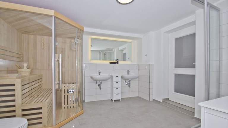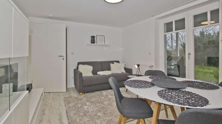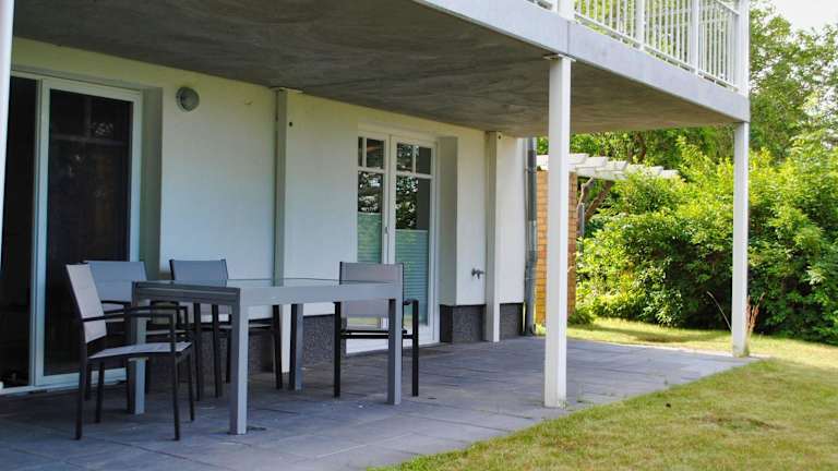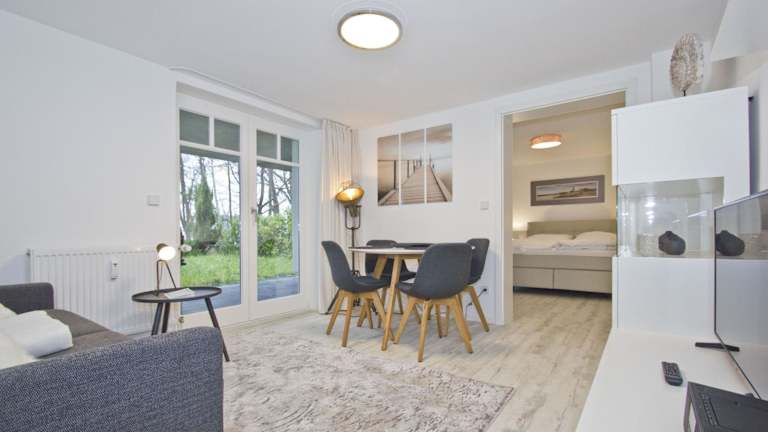 Moderne Ferienwohnung mit Sauna und Terrasse - Ferienresidenz Zwei Bodden 112. Die Ferienwohnung ist im Erdgeschoss gelegen und bietet eine Terrasse sowie kostenloses WLAN. Die Unterkunft ist ideal für einen erholsamen Aufenthalt.