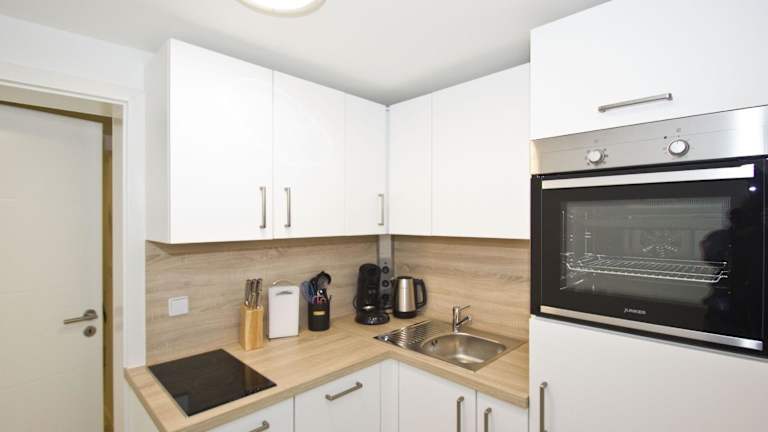 Die Ferienwohnung beinhaltet ein Schlafzimmer, eine gut ausgestattete Küche mit Kühlschrank und Geschirrspüler, ein Wohnzimmer sowie einen Fernseher. Die Unterkunft verfügt zudem über eine Sauna.
