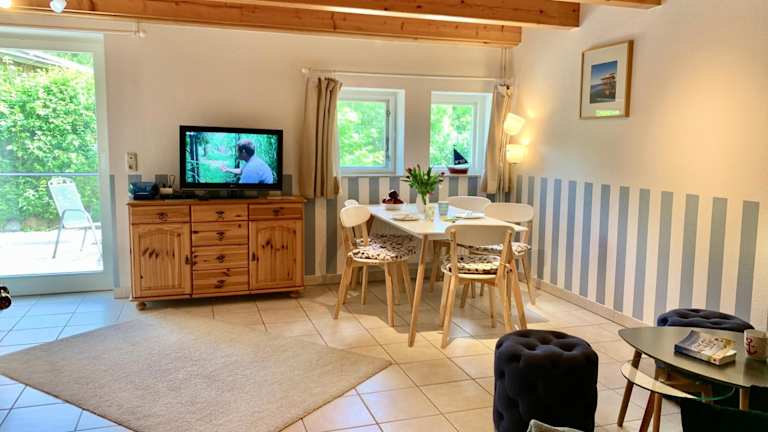 Die Ferienwohnung 1 im Böhler Haubarg bietet ein komfortables Apartment im Erdgeschoss. Es verfügt über 2 Schlafzimmer, in denen Sie sich nach einem erlebnisreichen Tag entspannen können. Das Apartment ist mit einem TV ausgestattet und verfügt über eine voll ausgestattete Küche mit einem Kühlschrank und einem Geschirrspüler. Kostenfreies WLAN ist ebenfalls vorhanden. Genießen Sie den Gartenblick und die ruhige Atmosphäre dieser Unterkunft.