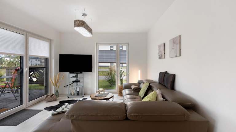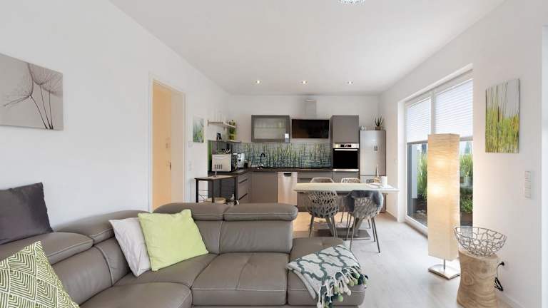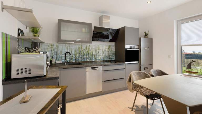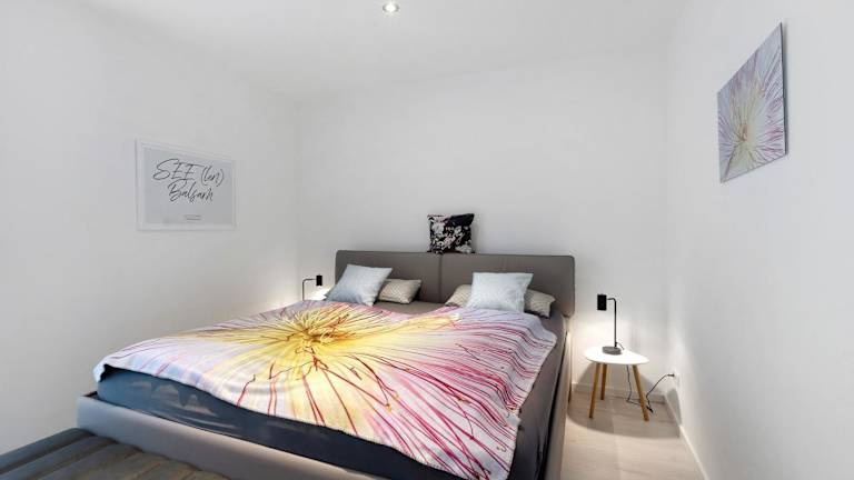 Die Ferienwohnung umfasst zwei Schlafzimmer, ein Badezimmer, eine voll ausgestattete Küche und eine Veranda mit Blick auf den See. Zur Ausstattung gehören Bettwäsche, Handtücher sowie ein TV mit Kabelkanälen. Zudem ist die Unterkunft rollstuhlgerecht und bietet Gartenmöbel.