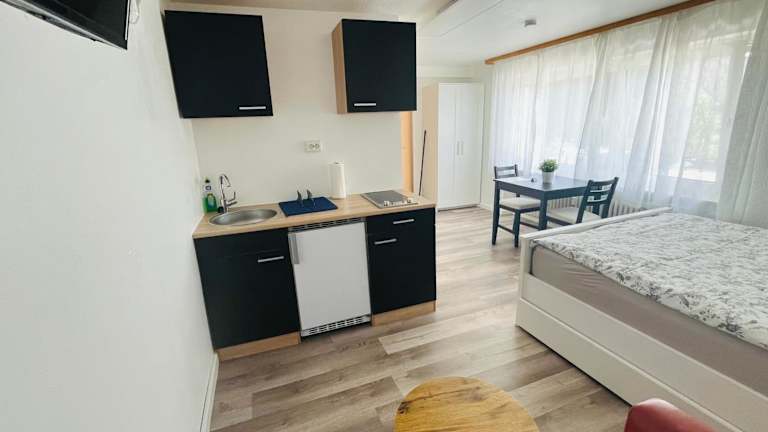 Die Ferienwohnung A&S Heuchelheim befindet sich 14 km von der Stadthalle Wetzlar entfernt und in der Nähe der Rittal Arena, die 12 km entfernt liegt. Der Flughafen Frankfurt ist 72 km von der Unterkunft entfernt. Die Umgebung bietet eine ruhige Gartenoase und verschiedene Freizeitmöglichkeiten.