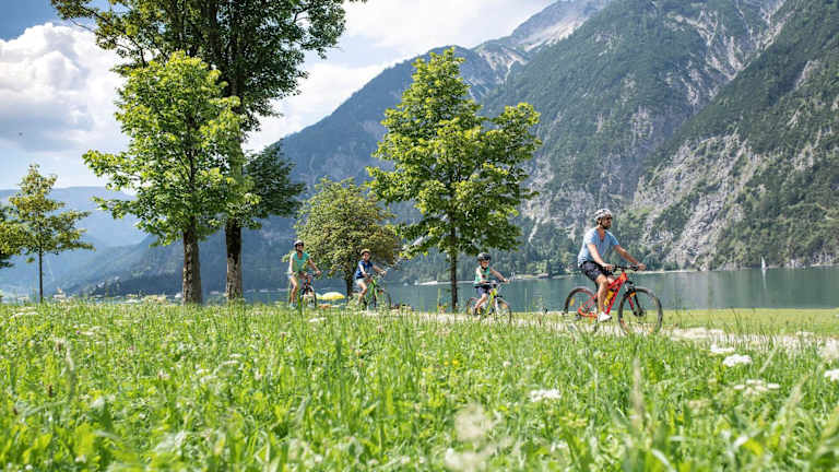 Achenkirch, Tirol, direkt am Strand gelegen, mit Blick auf die Berge.