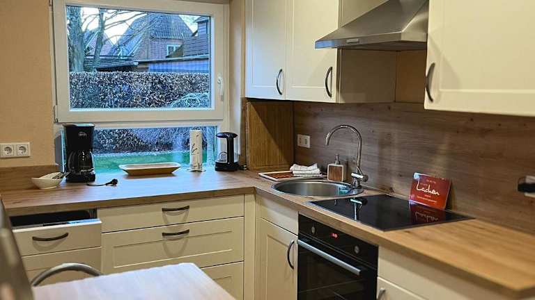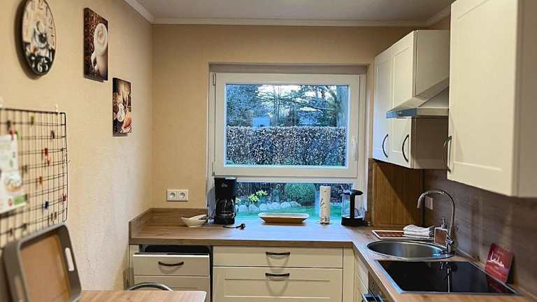 Die Ferienwohnung umfasst ein Schlafzimmer, ein Badezimmer, einen Essbereich und eine voll ausgestattete Küche. Zur Ausstattung gehören Bettwäsche, Handtücher und ein Flachbild-TV. Eine Terrasse mit Gartenblick ist ebenfalls vorhanden.