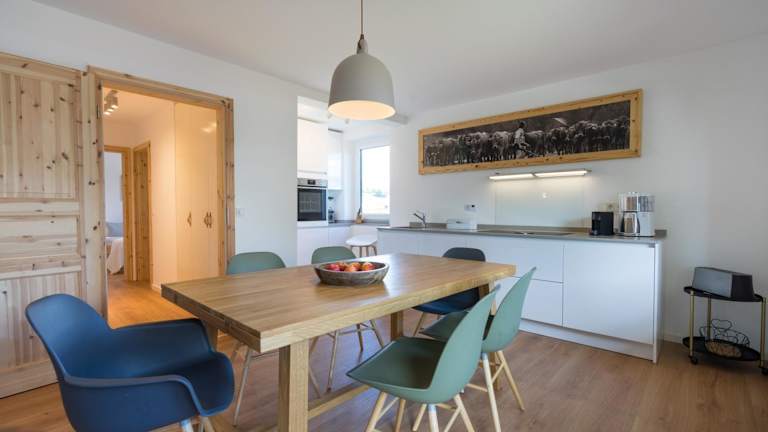 Die Ferienwohnung verfügt über zwei Schlafzimmer, ein Wohnzimmer, einen TV und eine gut ausgestattete Küche mit Kühlschrank und Geschirrspüler. Es stehen zwei Badezimmer mit Dusche zur Verfügung. Handtücher und Bettwäsche werden bereitgestellt.
