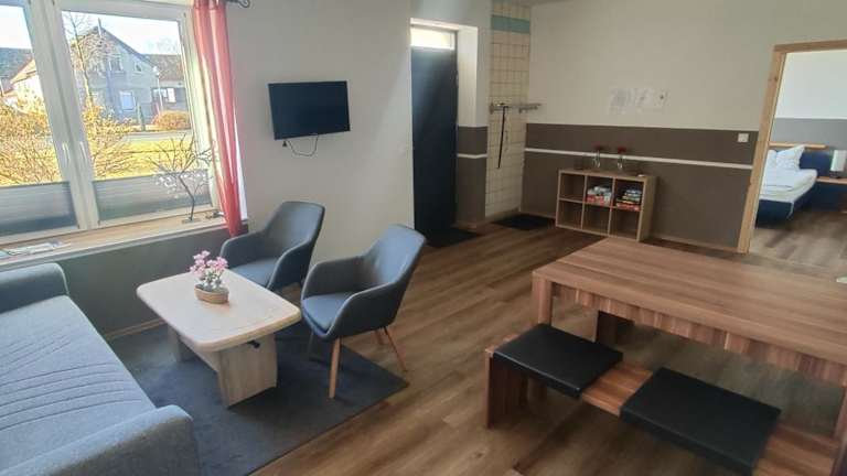 Die Ferienwohnung umfasst 2 Schlafzimmer, ein Wohnzimmer, ein Badezimmer mit Dusche und Badewanne sowie eine voll ausgestattete Küche. Handtücher und Bettwäsche werden bereitgestellt.