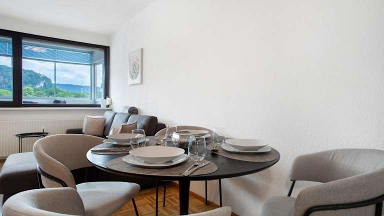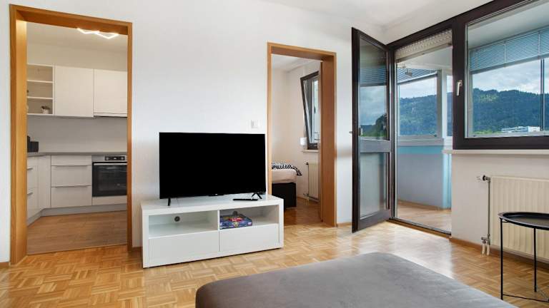 Die Ferienwohnung umfasst 1 Schlafzimmer, ein Wohnzimmer und ein Balkon mit Stadtblick. Zur Ausstattung gehören ein TV, eine gut ausgestattete Küche mit Kühlschrank und Ofen sowie 1 Badezimmer mit Dusche. Handtücher und Bettwäsche werden bereitgestellt.