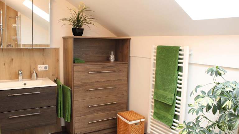 Die Ferienwohnung verfügt über ein Schlafzimmer, ein Badezimmer mit Dusche sowie eine gut ausgestattete Küche, die einen Kühlschrank und einen Geschirrspüler umfasst. Zur Unterhaltung steht ein Flachbild-TV mit Satellitenkanälen zur Verfügung. Handtücher und Bettwäsche sind Teil der Ausstattung.