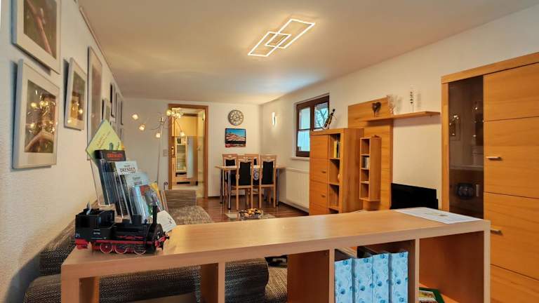 Verbringen Sie Ihren Aufenthalt im Ferienwohnung Am Elberadweg, einer gemütlichen und gut ausgestatteten Wohnung, nur 8 km von der lebhaften Innenstadt von Dresden entfernt. Genießen Sie den Balkon und die Terrasse sowie den kurzen Weg zur Elbe. Die Wohnung bietet ein komfortables Wohnzimmer mit Sat-TV, DVD-Player und CD-Player sowie eine voll ausgestattete Küche mit Essbereich und Geschirrspüler. Im schönen Garten können Sie bei schönem Wetter im Freien speisen und die Grillmöglichkeiten nutzen. In der Nähe finden Sie verschiedene Restaurants, Bars und Cafés sowie hausgemachte Marmelade und Weine. Der beliebte Elberadweg ist nur 500 m entfernt und der Bahnhof Radebeul Ost, der Sie in die Altstadt bringt, ist in 15 Gehminuten erreichbar. Kostenlose Parkplätze und WLAN stehen Ihnen zur Verfügung.