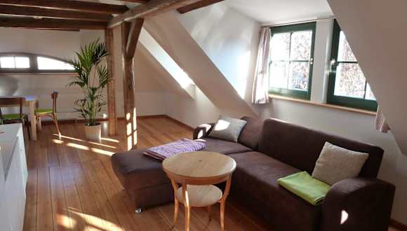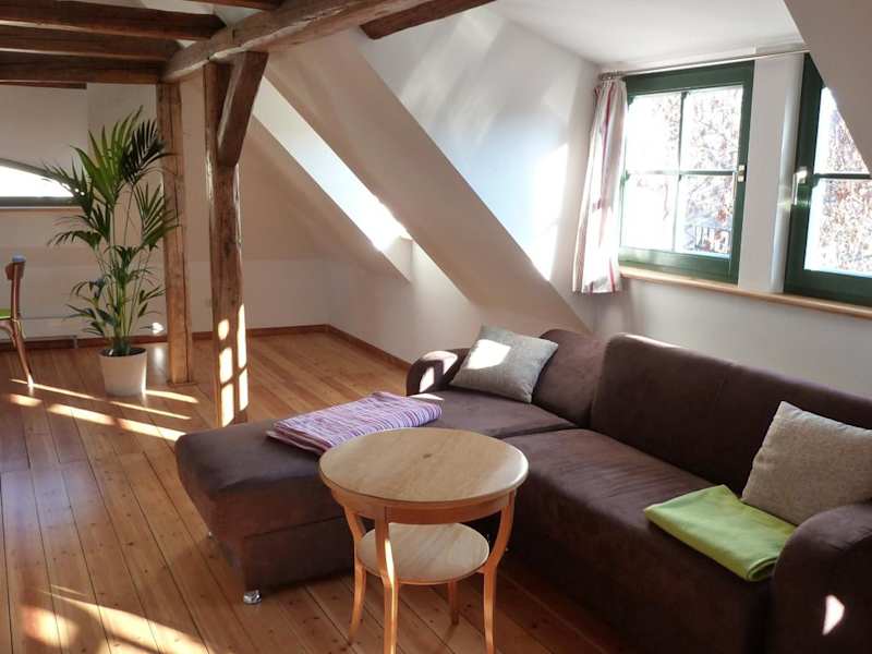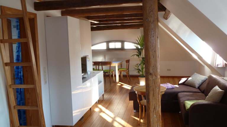 Die Ferienwohnung am Erfurter Dom liegt im Herzen der Erfurter Altstadt, nur 2 Gehminuten vom Domplatz entfernt. Von hier aus haben Sie eine perfekte Ausgangslage, um die historische Altstadt mit ihren beeindruckenden Gebäuden und gemütlichen Cafés zu erkunden. In unmittelbarer Nähe finden Sie auch verschiedene Einkaufsmöglichkeiten, darunter eine Auswahl an Bäckereien und Cafés. Ein Wochenmarkt auf dem nahe gelegenen Platz bietet Ihnen frische regionale Produkte. Der Hauptbahnhof Erfurt ist nur 900 m entfernt und das Kongresszentrum mit Messe Erfurt erreichen Sie nach 3 km. Der Flughafen Erfurt-Weimar ist 5 km entfernt.