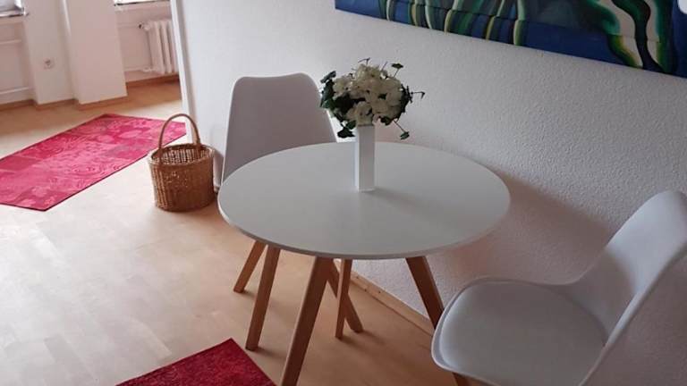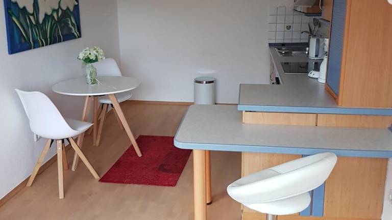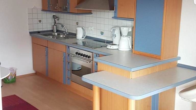 Die Ferienwohnung verfügt über ein Schlafzimmer, ein Wohnzimmer mit Flachbild-TV sowie eine gut ausgestattete Küche mit Kühlschrank und Ofen. Ein Badezimmer mit Dusche ist vorhanden. Handtücher und Bettwäsche werden bereitgestellt.