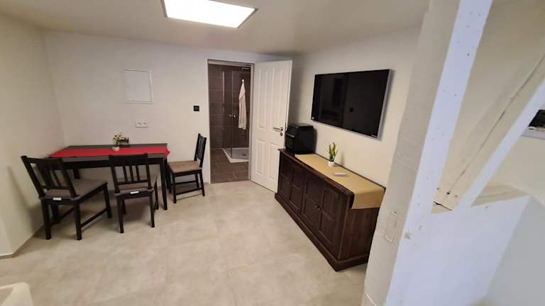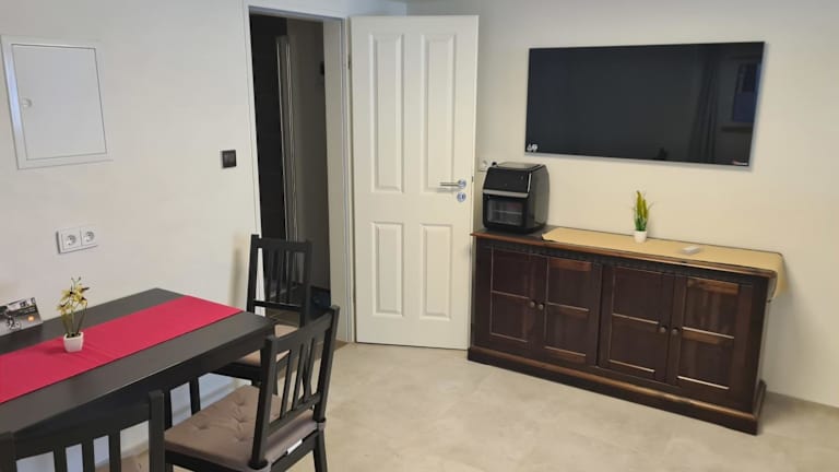 Die Ferienwohnung am Rathaus bietet Übernachtungsmöglichkeiten und ist ausgestattet mit einem Schlafzimmer, einem Wohnzimmer sowie einer voll ausgestatteten Küche. Die Unterkunft beinhaltet kostenfreies WLAN und einen Privatparkplatz, der vor Ort verfügbar ist. Eine Zahlung per Überweisung ist vor der Anreise erforderlich, und die Mindestalter für den Check-in beträgt 18 Jahre.
