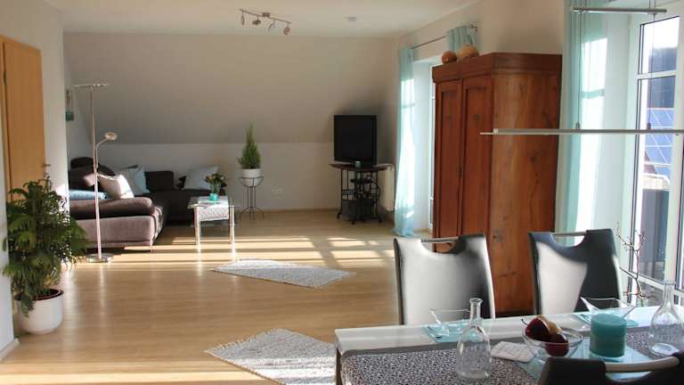 Die Ferienwohnung am Rosengarten befindet sich in Ebermannstadt, 32 km von der Brose Arena Bamberg, 35 km vom Hauptbahnhof Bamberg und 36 km von der Konzert- und Kongresshalle Bamberg entfernt. Weitere Sehenswürdigkeiten in der Nähe sind der Bamberger Dom (36 km) und der Hauptbahnhof Bayreuth (42 km). Der Flughafen Nürnberg ist 53 km entfernt.