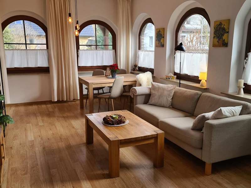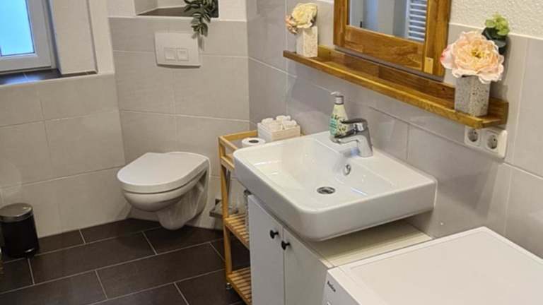 Die Ferienwohnung umfasst 1 Schlafzimmer, ein Wohnzimmer, eine voll ausgestattete Küche mit Kühlschrank und Kaffeemaschine sowie 1 Badezimmer mit Dusche und Haartrockner. Handtücher und Bettwäsche werden bereitgestellt.