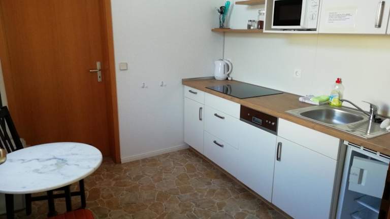 Die Unterkunft verfügt über eine voll ausgestattete Küche mit Kühlschrank und Kaffeemaschine, in der die Gäste ihre Mahlzeiten zubereiten können. Außerdem ist ein Grill vorhanden.