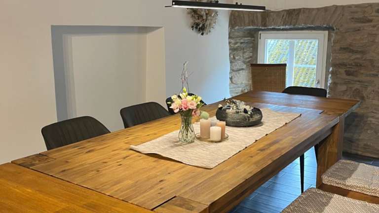 Die Ferienwohnung am Wald-und Wiesenkorb liegt in Kell, nur 22 km von der Universität Trier und 27 km vom Theater Trier entfernt. Die Unterkunft bietet eine ruhige Lage inmitten von Wald und Wiesen. Der Naturpark Saar-Hunsrück ist nur 21 km entfernt und lädt zu erholsamen Spaziergängen und Wanderungen ein. In der Umgebung gibt es viele Sehenswürdigkeiten zu entdecken, darunter das Rheinische Landesmuseum Trier und der Trierer Dom, die jeweils 27 km entfernt liegen. Der Flughafen Frankfurt-Hahn ist ca. 55 km entfernt.