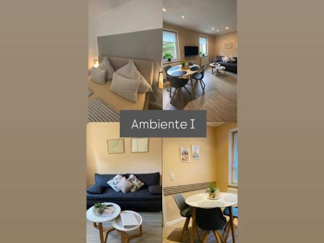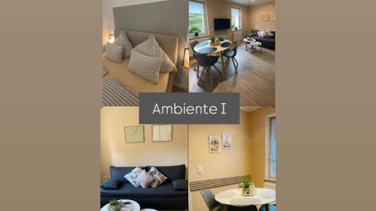 Die Ferienwohnung Ambiente bietet eine gemütliche und gut ausgestattete Unterkunft. Das Apartment verfügt über ein Wohnzimmer, ein separates Schlafzimmer, eine voll ausgestattete Küche und ein Badezimmer mit Dusche. Zur Ausstattung gehören auch ein Flachbild-TV und kostenfreies WLAN.
