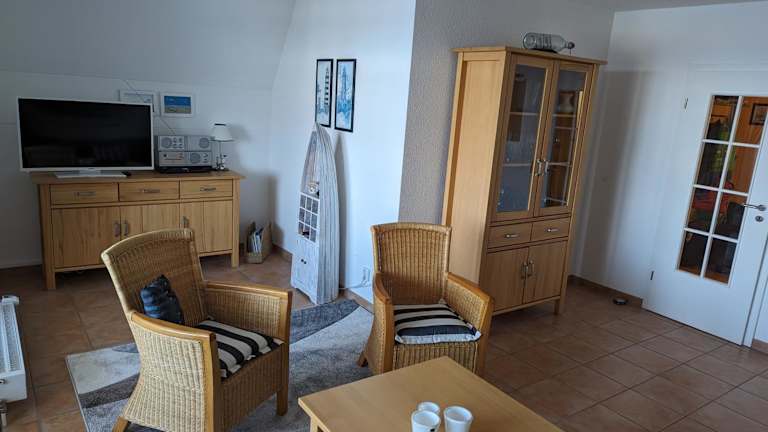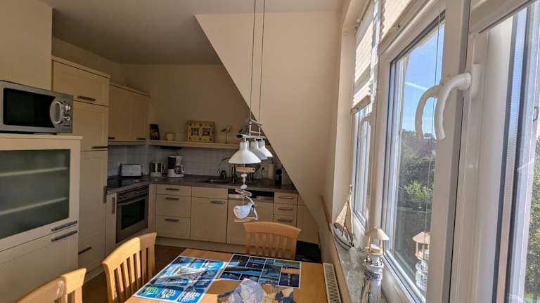 Die Ferienwohnung An de Waterkant Wiek befindet sich in Wiek auf Rügen, in unmittelbarer Nähe zum Hafen. Die Unterkunft liegt direkt am Strand und bietet Zugang zu bemerkenswerten Sehenswürdigkeiten wie Kap Arkona (13 km entfernt) und Naturbühne Ralswiek (37 km entfernt). Der Nationalpark Jasmund, bekannt für seine atemberaubenden Kreidefelsen, ist 29 km entfernt.