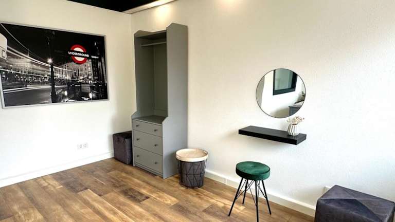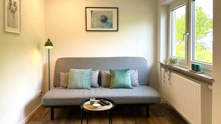 Die Ferienwohnung verfügt über ein Schlafzimmer, einen Satelliten Flachbild-TV, einen Essbereich, eine Küche mit Kühlschrank und ein Wohnzimmer. Handtücher und Bettwäsche werden bereitgestellt.