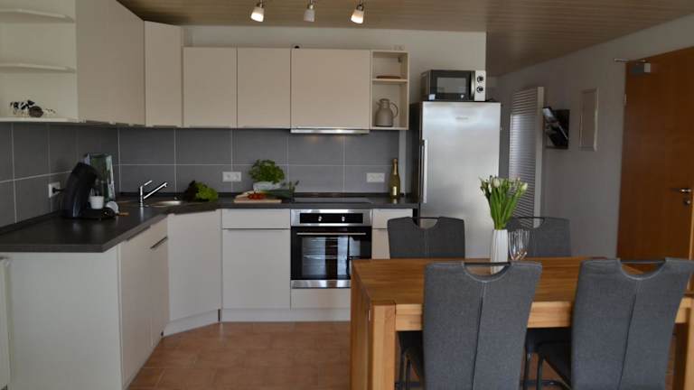 Die Ferienwohnung umfasst 2 Schlafzimmer, ein Wohnzimmer und eine voll ausgestattete Küchenzeile, ausgestattet mit einem Kühlschrank und einer Kaffeemaschine. Ein Badezimmer mit Dusche ist ebenfalls vorhanden. Handtücher und Bettwäsche werden bereitgestellt.