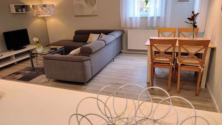 Die Ferienwohnung An der Korkeiche verfügt über ein gemütliches Schlafzimmer, eine voll ausgestattete Küche mit einem Kühlschrank und einem Geschirrspüler sowie ein modernes Badezimmer mit einer Dusche. Im Apartment stehen Ihnen zudem ein Flachbild-TV und ein komfortabler Sitzbereich zur Verfügung. Handtücher und Bettwäsche werden gestellt, um Ihren Aufenthalt so angenehm wie möglich zu gestalten.