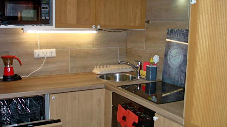 Die Ferienwohnung verfügt über ein Schlafzimmer sowie ein Wohnzimmer, das mit einem Flachbild-TV mit Satellitenkanälen ausgestattet ist. Eine voll ausgestattete Küche mit Kühlschrank und Geschirrspüler sowie ein Badezimmer mit Dusche sind ebenfalls vorhanden. Handtücher und Bettwäsche werden bereitgestellt.