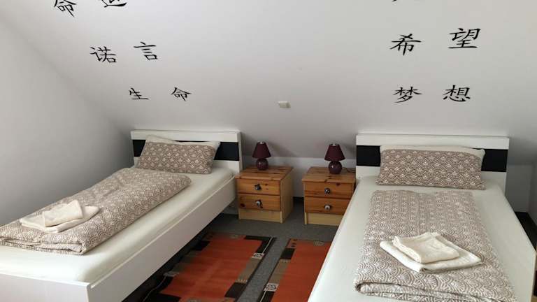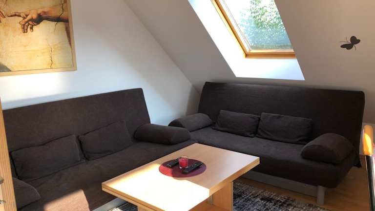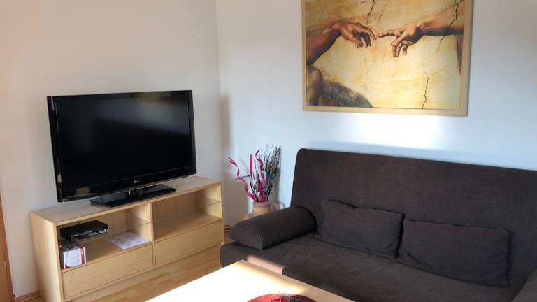 Die Ferienwohnung bietet zwei Schlafzimmer, ein Wohnzimmer sowie eine gut ausgestattete Küche. Zur Ausstattung gehören ein Satelliten-Flachbild-TV, ein Badezimmer mit Dusche und Badewanne sowie eine Kaffeemaschine. Handtücher und Bettwäsche werden bereitgestellt.