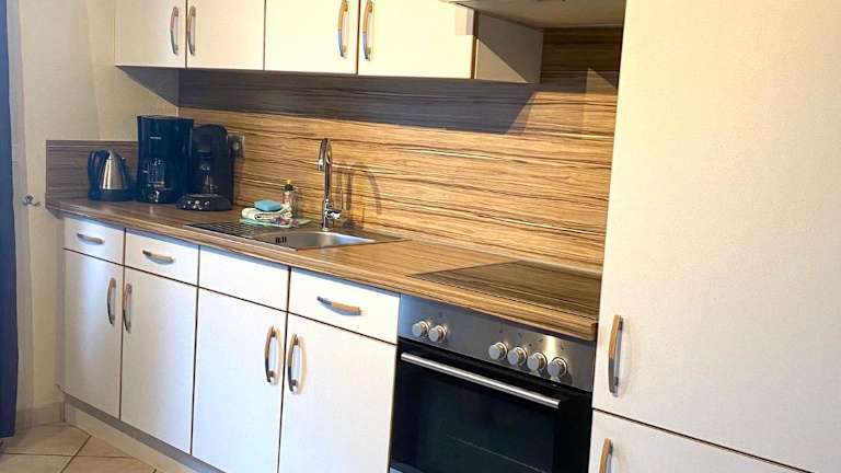 Die Ferienwohnung besteht aus zwei Schlafzimmern, einem Wohnzimmer und ist ausgestattet mit einem Flachbild-TV sowie einer gut ausgestatteten Küche. Die Küche umfasst einen Kühlschrank und einen Geschirrspüler. Ein Badezimmer mit Dusche ist ebenfalls vorhanden. Handtücher und Bettwäsche können gegen Aufpreis bereitgestellt werden.