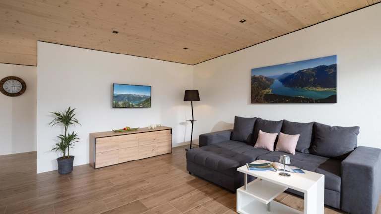 Die Ferienwohnung verfügt über 1 Schlafzimmer, ein Wohnzimmer mit Flachbild-TV, eine gut ausgestattete Küche mit Kühlschrank und Geschirrspüler sowie ein Badezimmer mit Dusche. Handtücher und Bettwäsche werden bereitgestellt. Zudem gibt es eine Terrasse mit Bergblick.