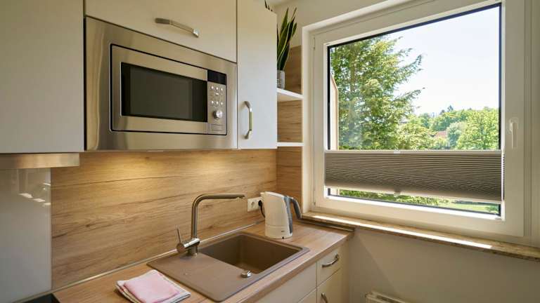 Die Ferienwohnung umfasst ein Schlafzimmer und ein Badezimmer. Zur Ausstattung gehören Bettwäsche, Handtücher, ein Flachbild-TV mit Kabelkanälen sowie eine voll ausgestattete Küche. Allergikerfreundliche Zimmer sind verfügbar.