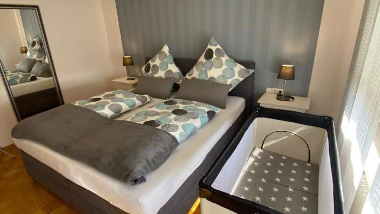Die Ferienwohnung Baumberger-Auszeit bietet Ihnen ein komfortables Apartment mit 2 Schlafzimmern und 1 Badezimmer. Das Apartment ist gut ausgestattet und verfügt über Bettwäsche, Handtücher, einen Flachbild-Sat-TV, einen Essbereich und eine voll ausgestattete Küche. Der Balkon bietet einen schönen Blick auf den Garten und lädt zum Entspannen ein. Kostenloses WLAN und Privatparkplätze stehen Ihnen ebenfalls zur Verfügung.