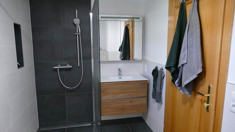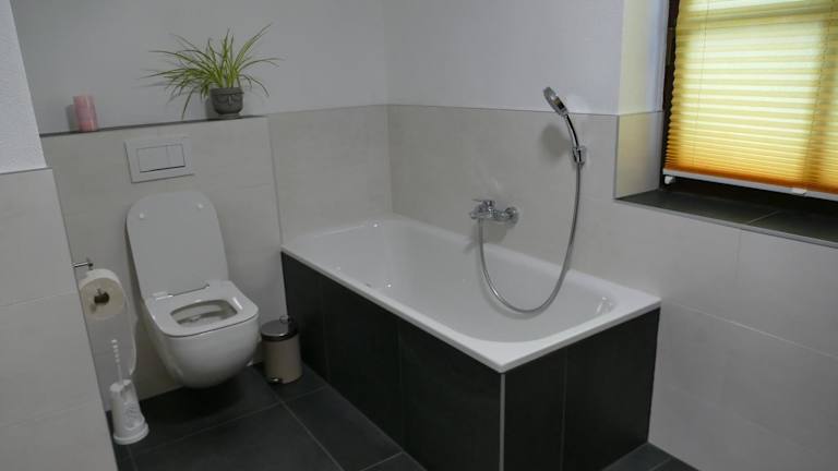 Die Ferienwohnung bietet Platz für mehrere Gäste und verfügt über zwei Schlafzimmer, ein Badezimmer mit Dusche und Badewanne sowie eine voll ausgestattete Küche mit Kühlschrank, Geschirrspüler und Ofen. Des Weiteren steht ein Wohnzimmer mit Sitz- und Essbereich zur Verfügung. Handtücher und Bettwäsche werden bereitgestellt, und eine Spielekonsole ist ebenfalls vorhanden.