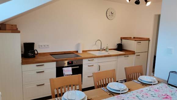 Die Ferienwohnung verfügt über 2 Schlafzimmer, ein Wohnzimmer, einen Flachbild-TV sowie eine gut ausgestattete Küche mit Kühlschrank und Geschirrspüler. Ein Badezimmer mit Dusche sowie ein Balkon mit Bergblick sind ebenfalls vorhanden. Handtücher und Bettwäsche werden bereitgestellt.