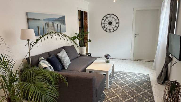 Die Wohnung verfügt über zwei Schlafzimmer, ein Wohnzimmer mit Flachbild-TV, eine gut ausgestattete Küche mit Kühlschrank und Geschirrspüler sowie ein Badezimmer mit Dusche. Handtücher und Bettwäsche werden bereitgestellt.