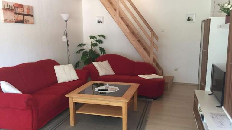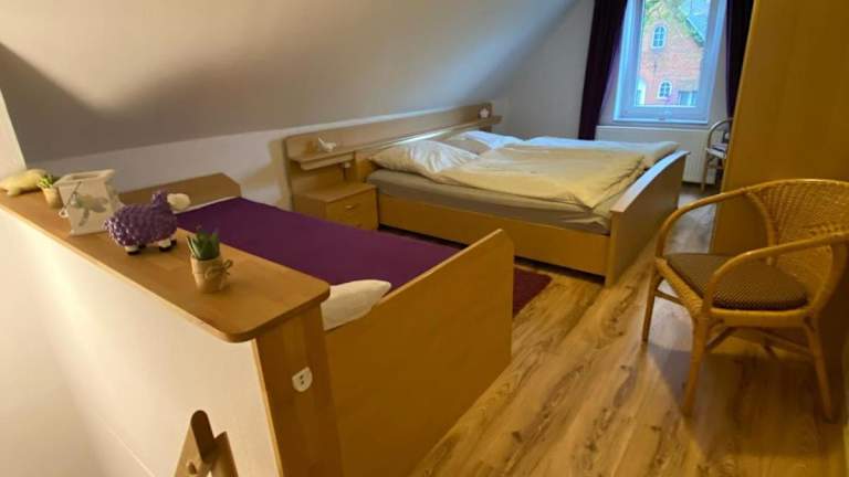 Die Ferienwohnung besteht aus einem Schlafzimmer, einem Wohnzimmer, einer voll ausgestatteten Küche und einem Badezimmer mit Dusche und Haartrockner. Handtücher und Bettwäsche werden bereitgestellt.