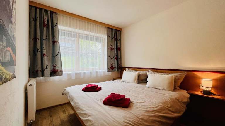 Die Ferienwohnung verfügt über zwei Schlafzimmer, ein Wohnzimmer mit einem Flachbild-TV sowie eine gut ausgestattete Küche mit Kühlschrank und Geschirrspüler. Ein Badezimmer mit Dusche ist ebenfalls vorhanden. Für den Aufenthalt werden Handtücher und Bettwäsche bereitgestellt.