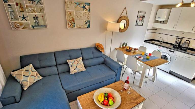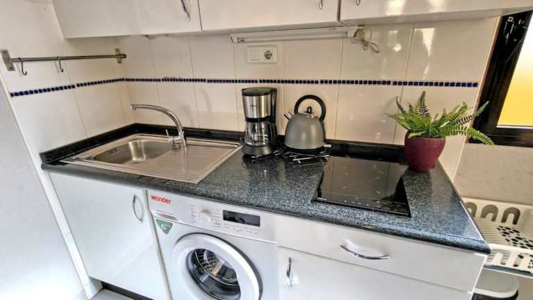 Die Ferienwohnung besteht aus einem Schlafzimmer, einem Wohnzimmer und einer voll ausgestatteten Küchenzeile, die mit einem Kühlschrank und einer Kaffeemaschine ausgestattet ist. Es gibt außerdem ein Badezimmer mit Badewanne und Haartrockner. Handtücher und Bettwäsche werden bereitgestellt.