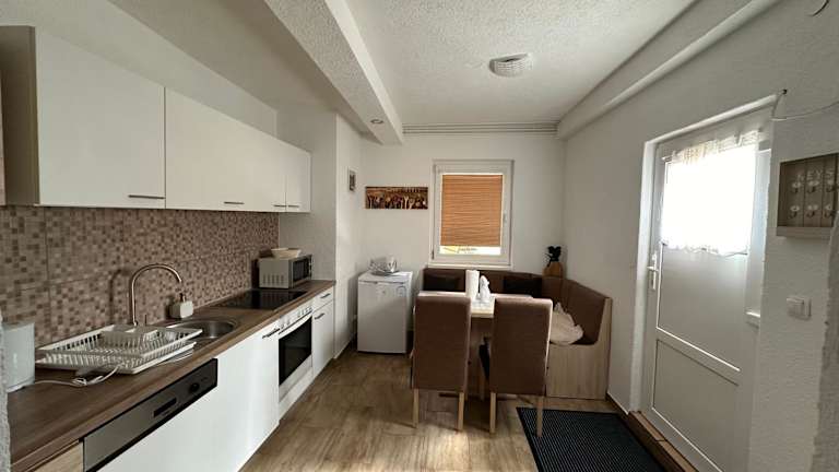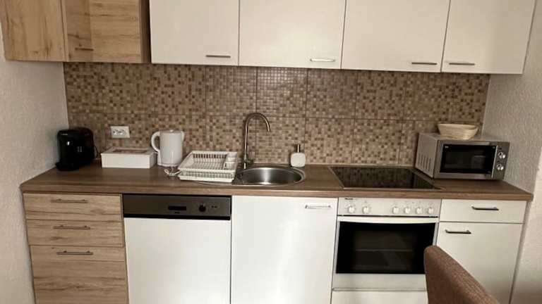 Die Ferienwohnung verfügt über eine gut ausgestattete Küche mit Kühlschrank und Geschirrspüler. Mahlzeiten können in der eigenen Küche zubereitet werden.