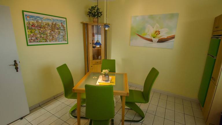 Die Wohneinheiten in der Ferienwohnung Cologne sind komfortabel und gemütlich eingerichtet. Jede Wohneinheit verfügt über einen Sitzbereich mit einem Schlafsofa, Sat-TV und einen Blu-ray-Player. Eine voll ausgestattete Küchenzeile mit Kühlschrank, Geschirrspüler, Backofen, Kaffeemaschine und Wasserkocher steht Ihnen ebenfalls zur Verfügung. Das private Badezimmer ist mit kostenfreien Pflegeprodukten und einem Haartrockner ausgestattet. Zusätzlich bietet das Apartment eine Terrasse für entspannte Stunden im Freien.