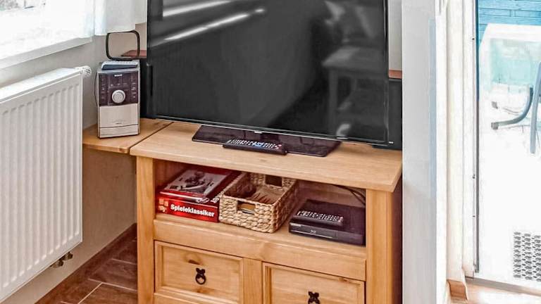 Die Ferienwohnung verfügt über ein Schlafzimmer, das einen angenehmen Rückzugsort bietet. Die Ausstattung der Unterkunft ist funktional und auf den Aufenthalt der Gäste ausgerichtet.