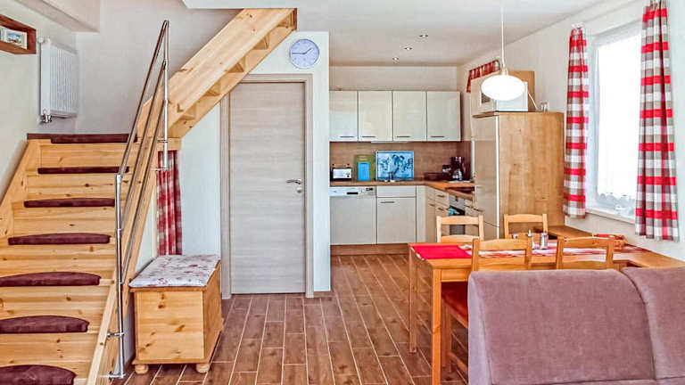 Die Ferienwohnung ist ausgestattet mit einer Küche, die über einen Kühlschrank und einen Geschirrspüler verfügt. Informationen zur Verpflegung sind nicht vorhanden.
