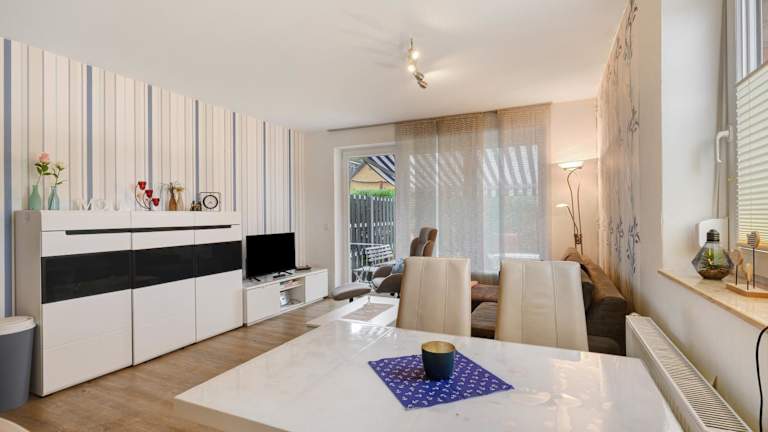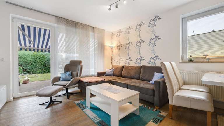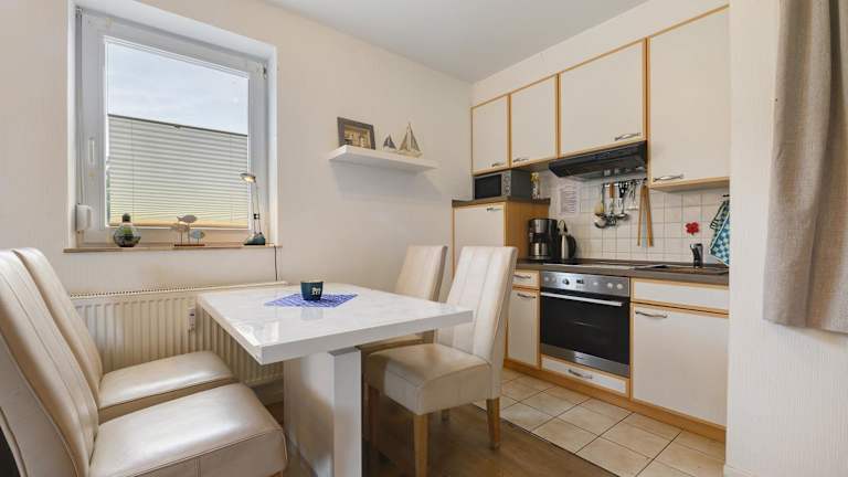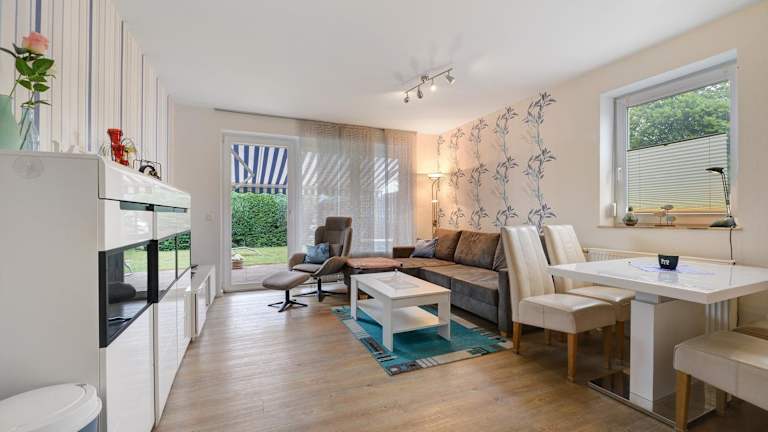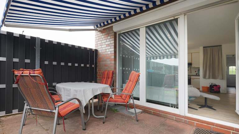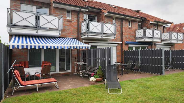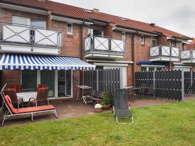 Ferienwohnung m. Terrasse, 2 Schlafzimmer. Auch ist ein Kinderbett vorhanden. Wohnzimmer mit integrierter EBK. Kühlschrank mit Eisfach. Elektroherd mit Backofen. Kaffeemaschine, Toaster, Mixer, Wasserkocher und alle Haushaltsgegenstände, Essecke mit 6 Stühlen. Ecksofa für eine weitere Schlafmöglichkeit ausziehbar. Spiele und Bücher für Kinder und Erwachsene. Flachbildschirm und DVD Recorder vorhanden. Prospekt anfordern 04231 / 83948 oder Mail: fewo.eggersQt-online.de