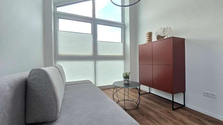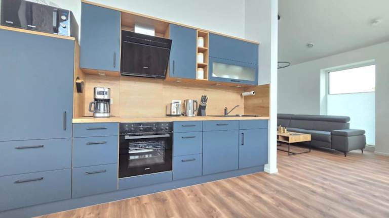 Die Ferienwohnung besteht aus einem Schlafzimmer und einem Wohnzimmer. Zur Ausstattung gehören ein Badezimmer mit Dusche und kostenlosen Pflegeprodukten sowie ein TV. Die Küche ist komplett ausgestattet.
