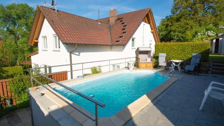 Die Ferienwohnungen Eva Lange verfügen über einen Außenpool, in dem Sie sich an warmen Tagen abkühlen können. Der Garten bietet auch einen Grillbereich, in dem Sie gemütliche Abende im Freien verbringen können. Die Umgebung bietet zahlreiche Möglichkeiten für Outdoor-Aktivitäten wie Radfahren, Wandern und Wassersport am Bodensee. Kostenfreie Parkplätze stehen den Gästen zur Verfügung.