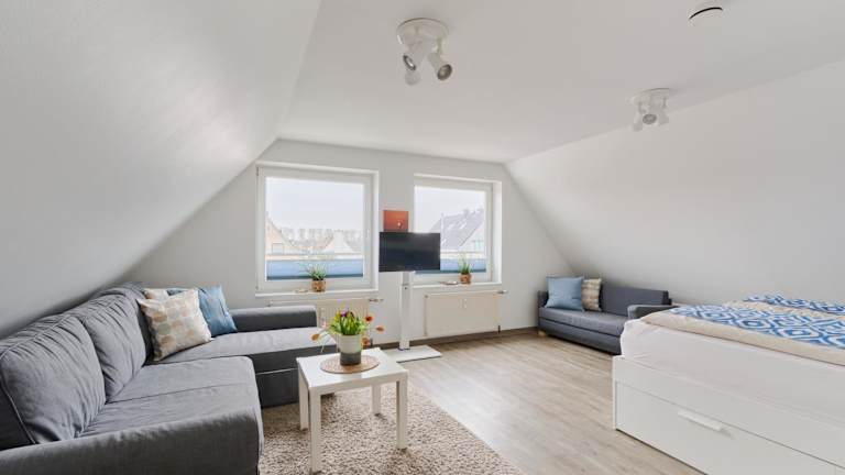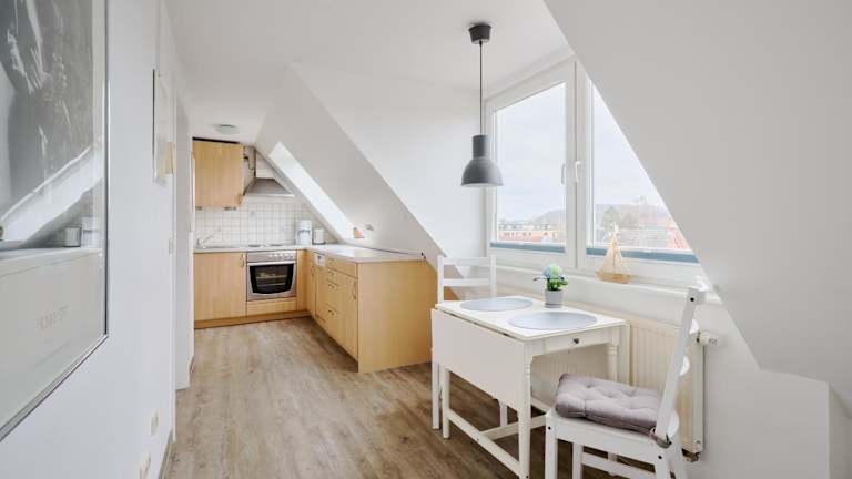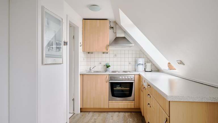 Die Ferienwohnung umfasst ein Wohnzimmer mit Kabel Flachbild-TV, eine gut ausgestattete Küche mit Kühlschrank, Geschirrspüler und Ofen sowie ein Badezimmer mit Dusche und Haartrockner.