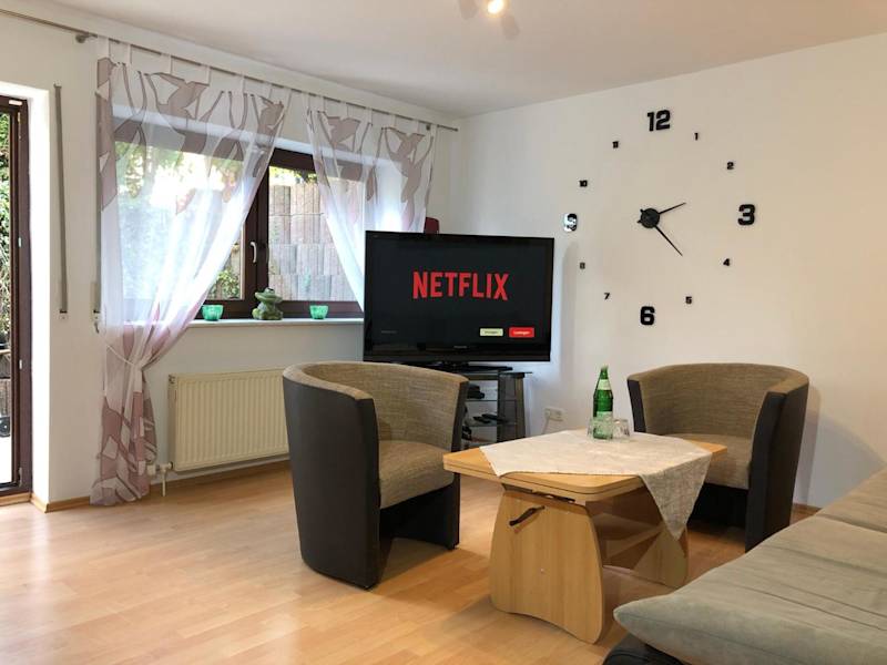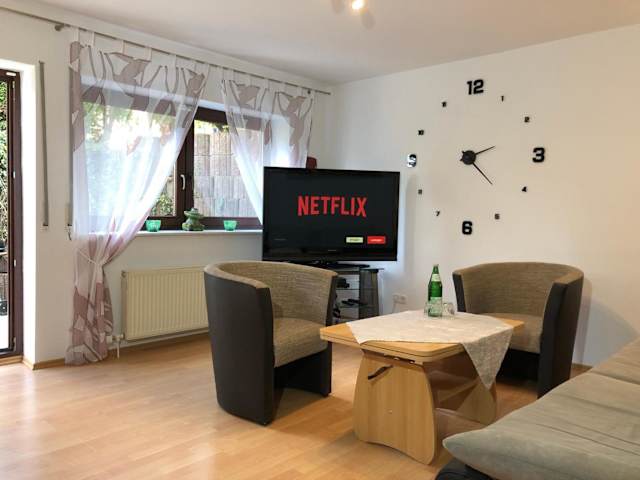 Die Ferienwohnung verfügt über eine Terrasse, auf der Sie gemütlich entspannen und grillen können. Die Wohnung ist gut ausgestattet und bietet Ihnen ein komfortables Wohnzimmer mit einem DVD-Player, eine voll ausgestattete Küche mit einem Kühlschrank, einem Geschirrspüler und einem Backofen, sowie ein Schlafzimmer und ein Badezimmer mit Dusche und Badewanne. Handtücher und Bettwäsche werden Ihnen zur Verfügung gestellt.