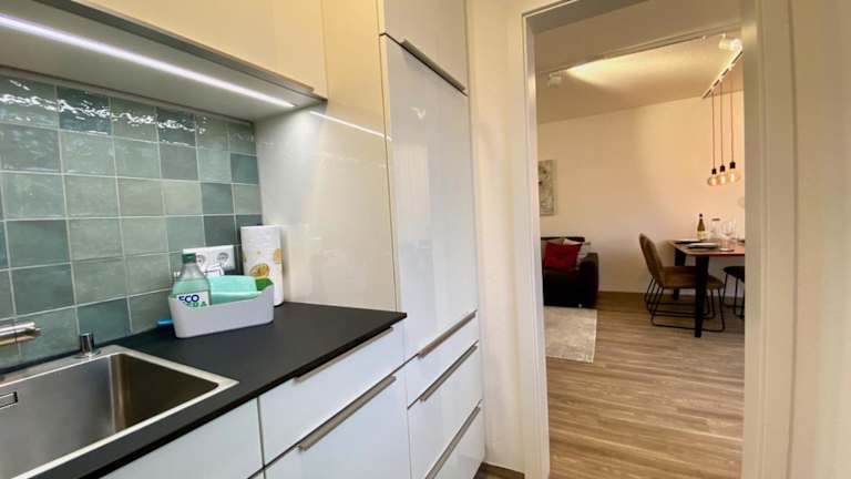 Die Ferienwohnung umfasst ein Schlafzimmer, ein Wohnzimmer und eine voll ausgestattete Küche mit Kühlschrank sowie einem Essbereich. Zudem steht ein Badezimmer zur Verfügung. Handtücher und Bettwäsche werden in der Ferienwohnung bereitgestellt.