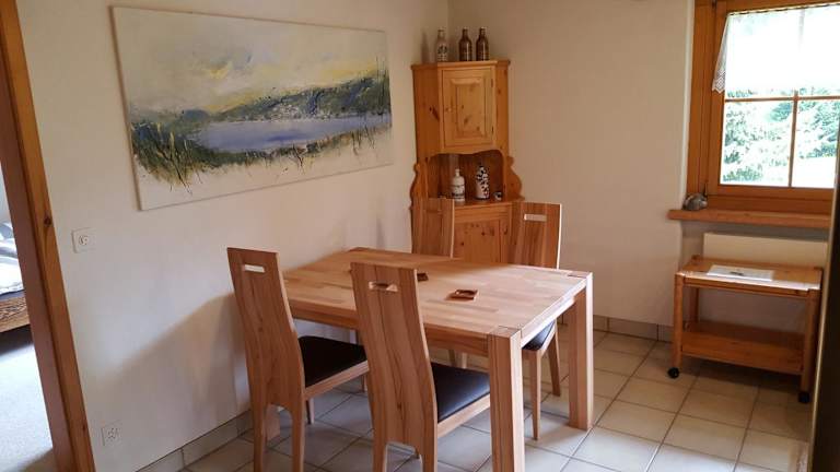 Die Ferienwohnung Gadenstatt liegt in einer ruhigen Lage, nur eine kurze Fahrt oder Busfahrt vom Zentrum von Davos entfernt. Die Umgebung bietet eine malerische Landschaft mit atemberaubenden Bergblicken und ist ein Paradies für Naturliebhaber. Direkt vor der Tür der Wohnung verläuft eine Langlaufloipe, die im Winter zum Skifahren und im Sommer zum Wandern und Radfahren einlädt. Die Bushaltestelle Davos-Frauenkirch und der Bahnhof sind nur 200 m entfernt, was es einfach macht, die Region zu erkunden. In der Nähe der Wohnung gibt es auch ein Restaurant und einen Supermarkt, die nur 1,3 km entfernt sind.