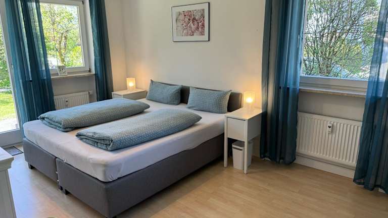 Die Ferienwohnung verfügt über zwei Schlafzimmer und ein Wohnzimmer mit einem Flachbild-TV. Die gut ausgestattete Küche beinhaltet einen Kühlschrank und einen Geschirrspüler. Zudem gibt es zwei Badezimmer mit Duschen. Handtücher und Bettwäsche werden bereitgestellt.