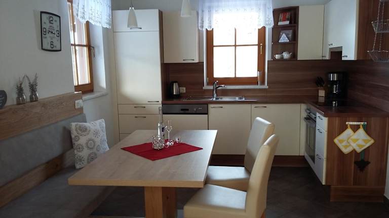 In der Ferienwohnung Gassoid können Sie Ihre Mahlzeiten selbst zubereiten, da jede Wohnung über eine gut ausgestattete Küche verfügt. Alternativ erreichen Sie innerhalb von 15 Fahrminuten das Zentrum von Fieberbrunn, wo Sie eine Vielzahl von Restaurants und Cafés finden, die regionale und internationale Küche servieren.
