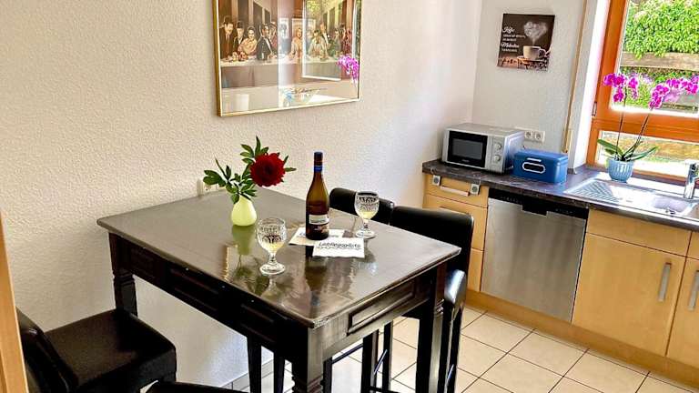 In der Ferienwohnung Gerne-Da können Sie Ihre Mahlzeiten selbst zubereiten und in der voll ausgestatteten Küche genießen. Alternativ können Sie auch in einem der Restaurants in der Umgebung speisen.